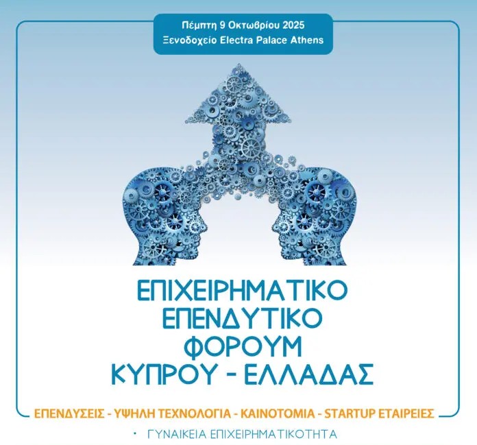 Η επιχειρηματική συνεργασία Κύπρου – Ελλάδας στους τομείς της νέας τεχνολογίας, της καινοτομίας, των startup εταιρειών και της γυναικείας επιχειρηματικότητας, θα είναι στο επίκεντρο του Επιχειρηματικού και Επενδυτικού Φόρουμ που γίνεται στην Αθήνα.