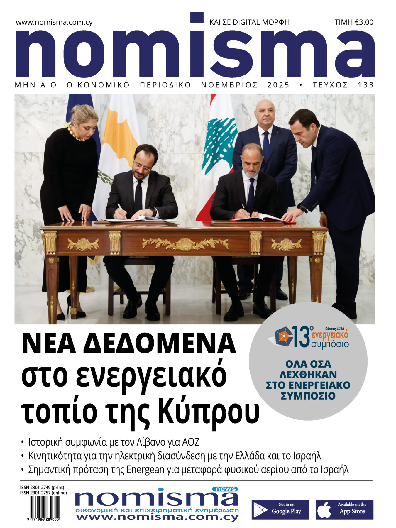 Τα νέα δεδομένα που δημιουργούνται στο ενεργειακό τοπίο της Κύπρου αναλύει στο νέο τεύχος του το περιοδικό nomisma.
