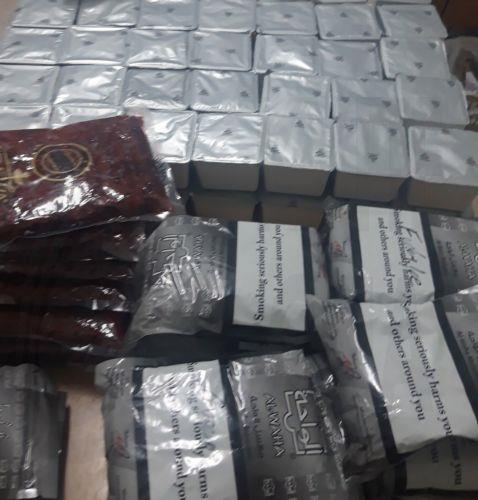 Στις αποσκευές του πρώτου επιβάτη, σύμφωνα με την ανακοίνωση, εντοπίστηκαν 49 κούτες των 200 τσιγάρων η κάθε μία και συσκευασίες καπνού για στριφτό τσιγάρο συνολικού βάρους 4 κιλών και 850 γραμμαρίων.