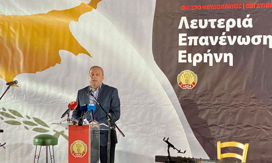 Σημείωσε ότι «ο δρόμος της λύσης δεν μπορεί να περνά από την ένταξη της Κύπρου στο ΝΑΤΟ. Το ΑΚΕΛ δεν πρόκειται ποτέ να δεχθεί τέτοιο ενδεχόμενο», αναφέροντας ότι «η λύση δεν μπορεί να είναι άλλη από τη διζωνική, δικοινοτική ομοσπονδία με πολιτική ισότητα. Είναι η μόνη συμφωνημένη βάση λύσης, η μόνη διεθνώς κατοχυρωμένη, η μόνη ρεαλιστική».