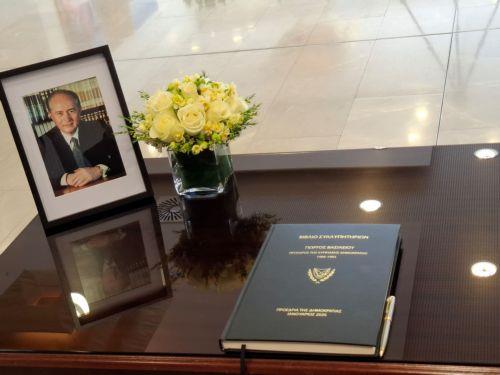 Σύσσωμη η πολιτική ηγεσία του τόπου προσήλθε την Παρασκευή στο Προεδρικό Μέγαρο, προκειμένου να υπογράψει το Βιβλίο Συλλυπητηρίων, που ανοίχτηκε για τον πρώην Πρόεδρο της Δημοκρατίας, Γιώργο Βασιλείου, ο οποίος απεβίωσε το βράδυ της Τρίτης.