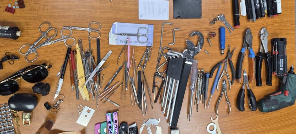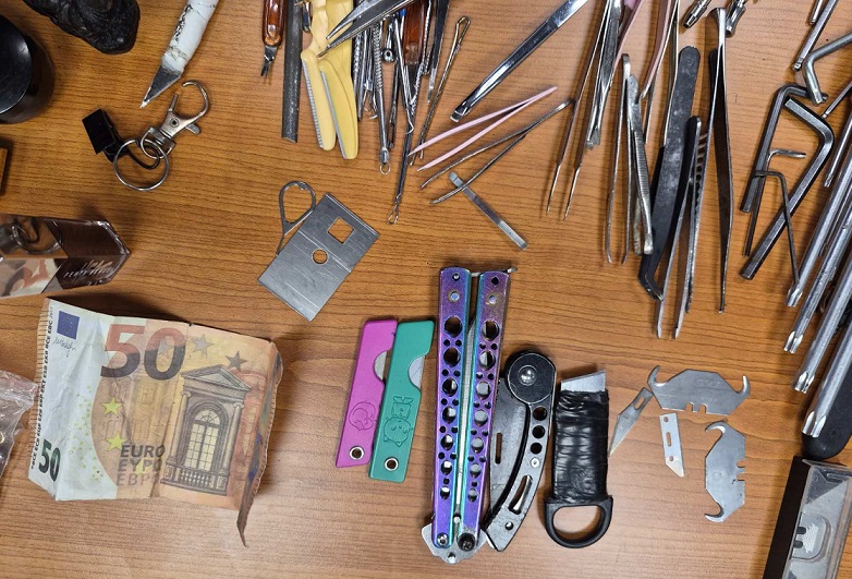 Εντόπισαν επίσης στην κατοχή του 34χρονου, δύο μαχαίρια και επιθετικά όργανα, διαρρηκτικά εργαλεία, καθώς και ποσότητα κρυσταλλικής ουσίας, βάρους πέντε γραμμαρίων περίπου, που πιστεύεται ότι είναι ναρκωτικά.