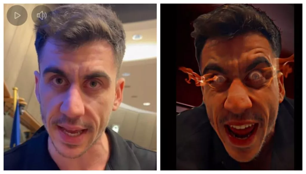 Στην αρχή του βίντεο του αναφέρει χαρακτηριστικά «μεινίσκω σε έπαυλη και περιπαίζω σας ότι είναι το γραφείο μου», βάζοντας φίλτρο δαίμονα στο πρόσωπό του.