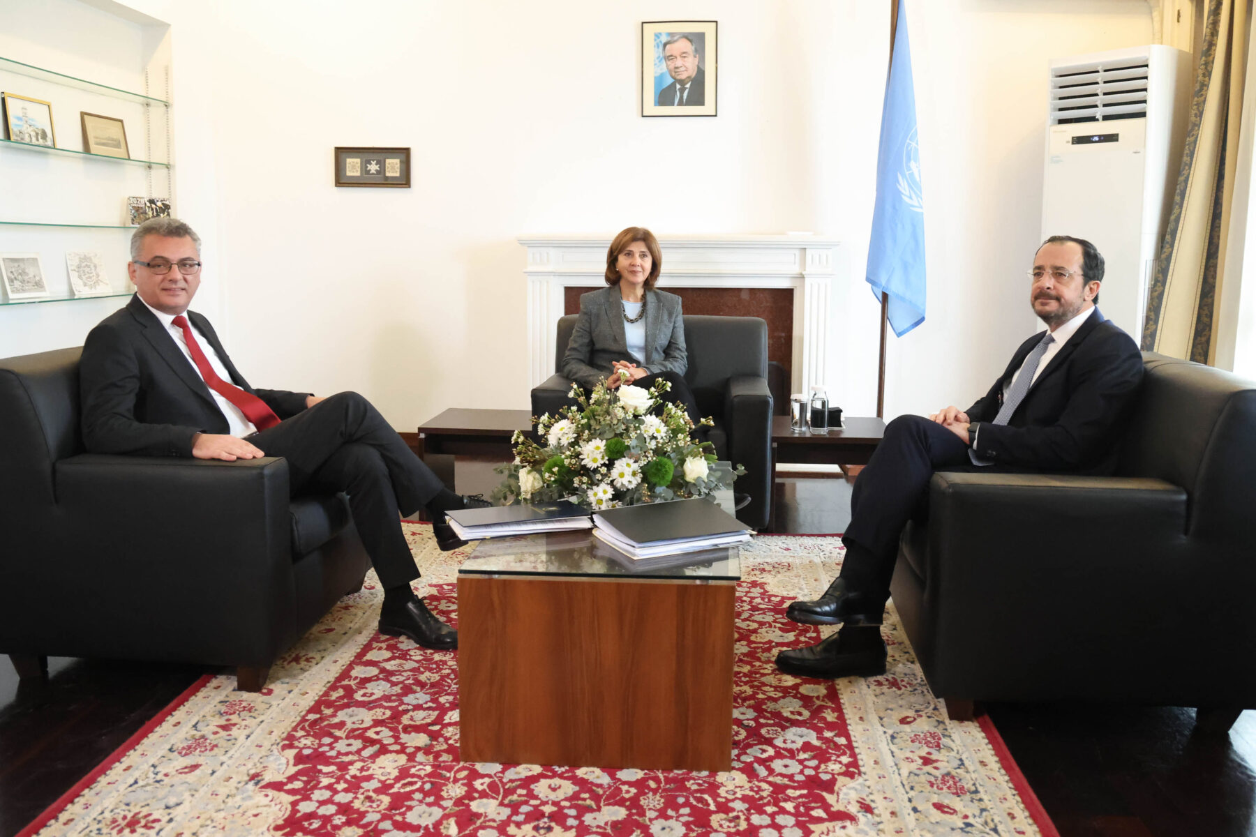 Ξεκίνησε γύρω στις 11.15 η συνάντηση της Προσωπικής Απεσταλμένης του ΓΓ των ΗΕ Μαρία Άνχελα Ολγκίν με τον Πρόεδρο της Δημοκρατίας Νίκο Χριστοδουλίδη και τον ηγέτη των Τουρκοκυπρίων Τουφάν Έρχιουρμαν, στην οικία του Ειδικού Αντιπροσώπου του ΓΓ του ΟΗΕ, στη νεκρή ζώνη στην περιοχή του παλιού αεροδρομίου Λευκωσίας.