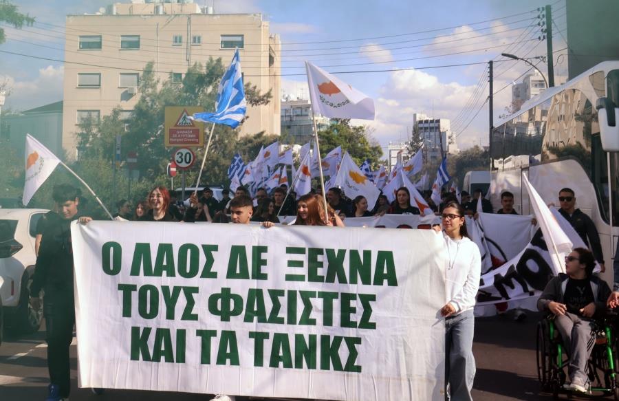 Μηνύματα για ελευθερία στην Κύπρο και την Παλαιστίνη καθώς και δωρεάν δημόσια εκπαίδευση έστειλε η αντικατοχική πορεία μνήμης και τιμής για την 52η επέτειο της εξέγερσης του Πολυτεχνείου που διοργάνωσε η Παγκύπρια Συντονιστική Επιτροπή Μαθητών (ΠΣΕΜ) το πρωί της Δευτέρας στη Λευκωσία.