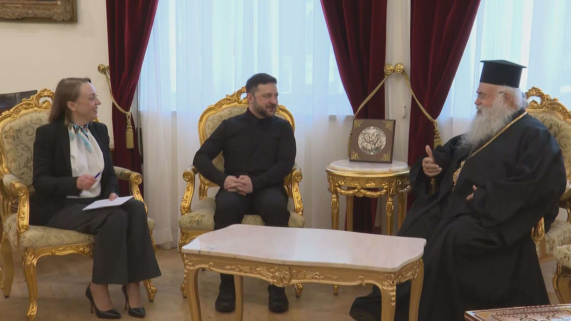 Από την πλευρά του, ο κ. Ζελένσκι ευχαρίστησε πολύ τον Αρχιεπίσκοπο για τη συνάντηση και για την πρόσκληση να επισκεφθεί την Αρχιεπισκοπή. «Και ευχαριστώ που τόσο θερμά θυμάστε και την Ουκρανία και τους Ουκρανούς. Θυμάστε και τις δικές σας επισκέψεις στην Ουκρανία», είπε.