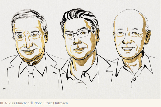 Ο Αμερικανοϊσραηλινός Τζοέλ Μοκίρ, ο Γάλλος Φιλίπ Αγκιόν και ο Καναδός Πίτερ Χόβιτ τιμήθηκαν με το βραβείο Νόμπελ Οικονομίας για τον αντίκτυπο των νέων τεχνολογιών στην οικονομική ανάπτυξη.