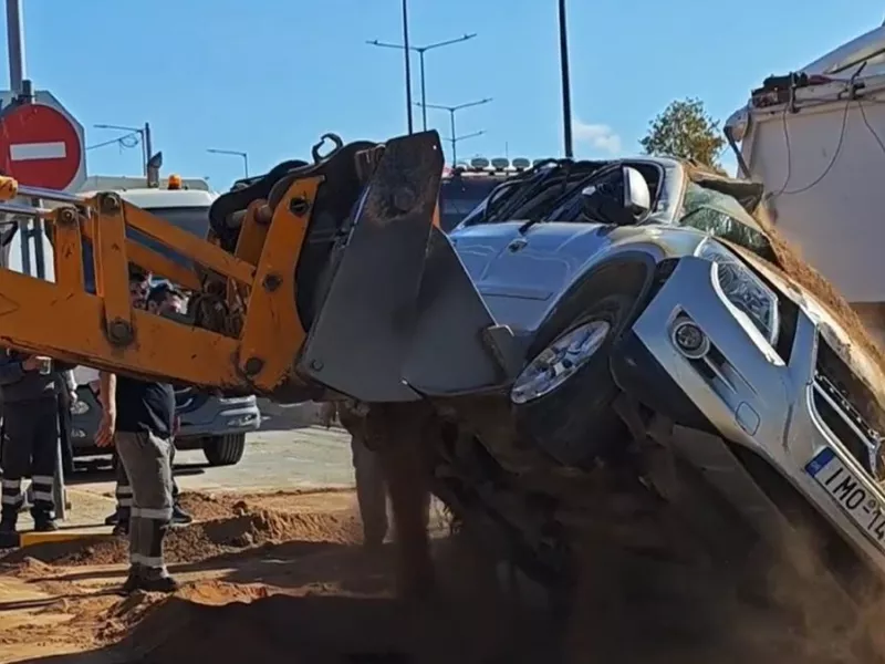 ΒΙΝΤΕΟ: Φορτηγό με χώματα «έλιωσε» ΙΧ στα «Βλάχικα» της Βάρης