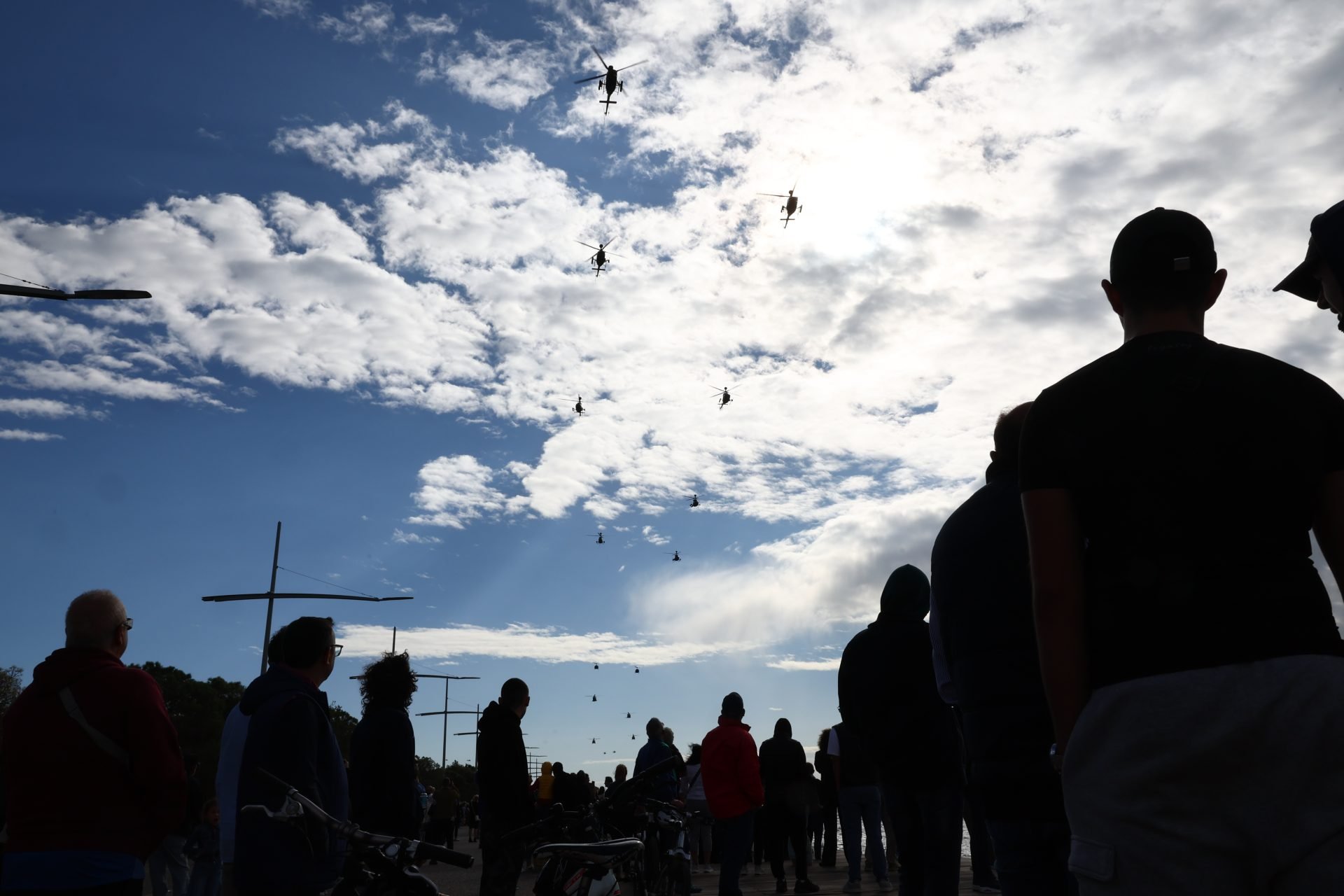 Η παρέλαση ολοκληρώθηκε με τη θεαματική αεροπορική επίδειξη της ομάδας «ΖΕΥΣ», όπου ο επισμηναγός Γεώργιος Σωτηρίου έκανε με μαχητικό F-16 ασκήσεις ακριβείας και εντυπωσιακούς ελιγμούς πάνω από τον χώρο της παρέλασης, στη νέα Παραλία, ενώ μέσω ασυρμάτου συνομίλησε με τον Πρόεδρο της Δημοκρατίας Κωνσταντίνο Τασούλα.