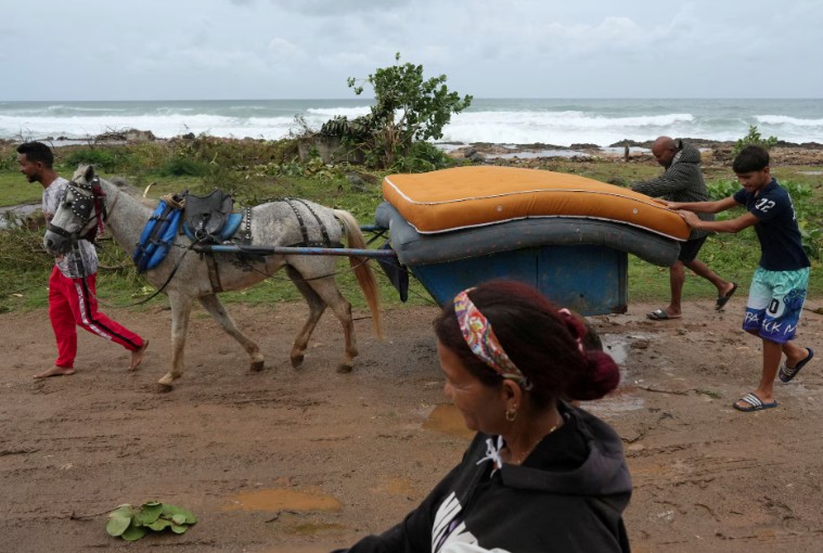 Άνθρωποι μεταφέρουν τα υπάρχοντά τους σε καταφύγια ενόψει της άφιξης του τυφώνα Μελίσα στην Κούβα