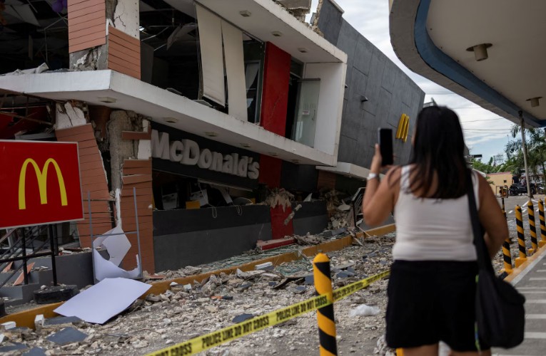 Ένα κατεστραμμένο κατάστημα McDonald’s μετά το σεισμό 6,9 Ρίχτερ στις Φιλιππίνες
