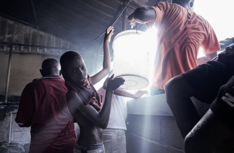 Αϊτή: Άνθρωποι βοηθούν τους πυροσβέστες να σβήσουν μια πυρκαγιά σε ένα καταφύγιο