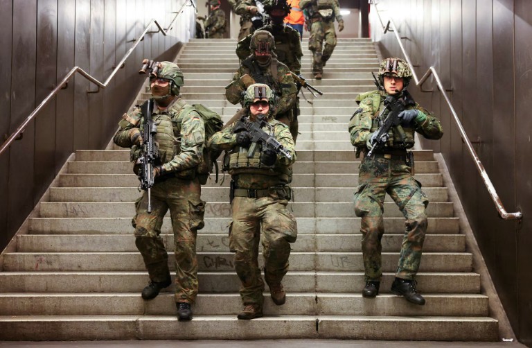 Στρατιώτες του γερμανικού στρατού Bundeswehr σε σταθμό του μετρό κατά τη διάρκεια άσκησης