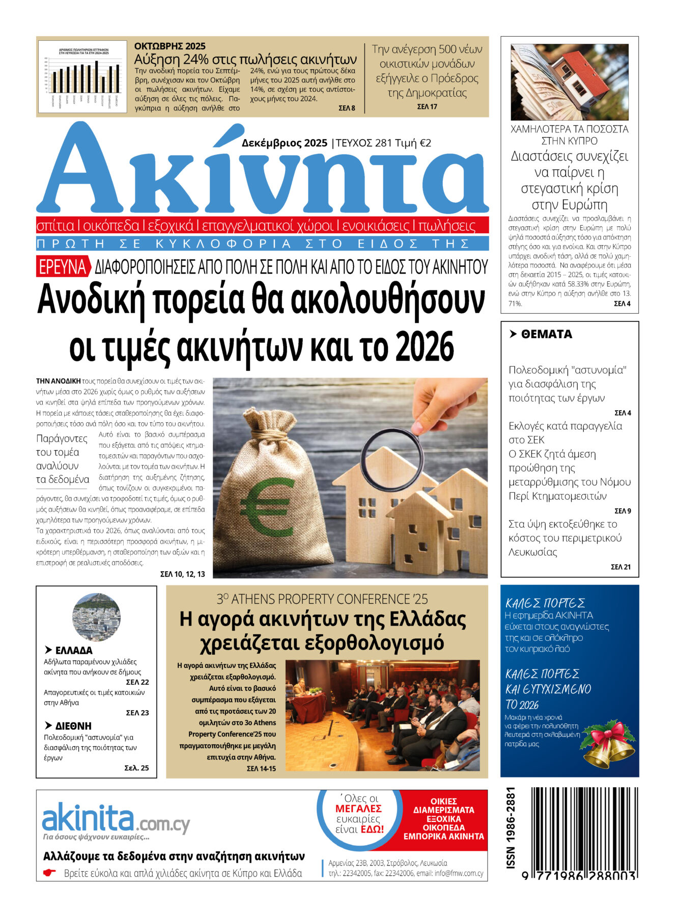 Όπως πάντα στο νέο τεύχος δημοσιεύονται όλες οι τρέχουσες εξελίξεις για τον τομέα ακινήτων καθώς και αποκλειστικές συνεντεύξεις και άρθρα παραγόντων της κτηματαγοράς Επίσης, υπάρχουν όλες οι μόνιμες στήλες και δημοσιεύονται πολλές αγγελίες για αγορές, πωλήσεις και ενοικιάσεις ακινήτων για την Κύπρο και την Ελλάδα. Η εφημερίδα κυκλοφορεί στα περίπτερα ή στα γραφεία μας τηλ. +357 22342005