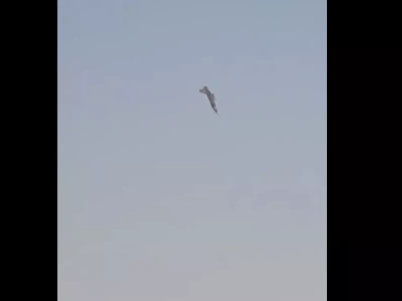 Indian Tejas fighter jet crashed during the Dubai Air Show, with thick black smoke rising from the crash site near the airport.