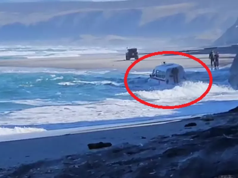 Στο Ιτουρούπ, το μεγαλύτερο και βορειότερο νησί στις νότιες Κουρίλες, τα στοιχεία της φύσης παραλίγο να παρασύρουν ένα διασωστικό όχημα στη θάλασσα, με τον οδηγό να καταφέρνει με προσπάθεια να φέρει το όχημα στην ακτή.