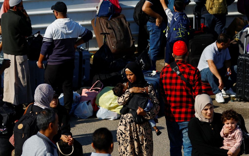 Πολίτες περιμένουν να περάσουν από το πέρασμα στη Ράφα, ανάμεσά τους και πολλά παιδιά.