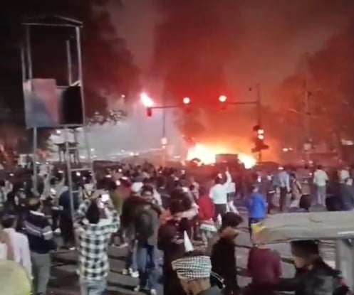 Εικόνες που μεταδίδουν τοπικά μέσα ενημέρωσης δείχνουν φλόγες και καπνό να υψώνεται από περισσότερα από ένα οχήματα σε δρόμο με κυκλοφοριακή συμφόρηση που βρίσκεται κοντά σε έναν σταθμό του μετρό στη παλιά πόλη του Νέου Δελχί.