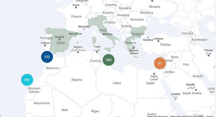 673 νεκροί και αγνοούμενοι στα περάσματα προς Ευρώπη μέχρι τις 16 Απριλίου του 2025, Πηγή: ΔΟΜ