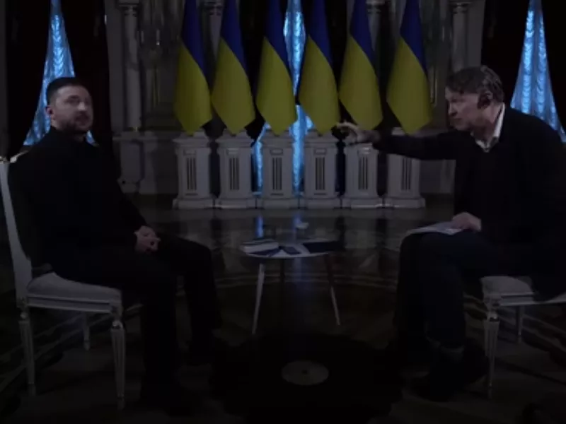 Στη συνέχεια της συνέντευξης, τα φώτα έκλεισαν και το ρεύμα επανήλθε λίγο αργότερα με εφεδρική γεννήτρια. «Αυτές είναι οι συνθήκες διαβίωσής μας», είπε ο Ζελένσκι με ένα πικρό χαμόγελο. «Είναι φυσιολογικό. Έχουμε διακυμάνσεις στην παροχή ηλεκτρικού ρεύματος στο Κίεβο, όπως παντού αλλού». Είπε ότι ο Πούτιν διέταξε «τρομοκρατικές επιθέσεις» κατά του ενεργειακού συστήματος της Ουκρανίας, σκοτώνοντας αμάχους και αφήνοντάς τους χωρίς ηλεκτρικό ρεύμα και νερό. «Δεν μπορεί να δημιουργήσει ένταση στην κοινωνία μας με κανέναν άλλο τρόπο».